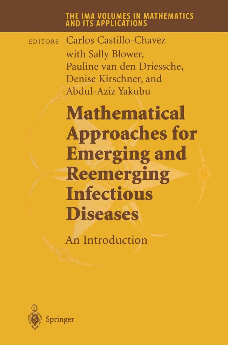 This IMA Volume in Mathematics and its Applications MATHEMATICAL APPROACHES FOR EMERGING AND REEMERGING INFECTIOUS DISEASES: MODELS, AND THEORY METHODS is based on the proceedings of a successful one week workshop. The pro ceedings of the two-day tutorial which preceded the workshop "Introduction to Epidemiology and Immunology" appears as IMA Volume 125: Math ematical Approaches for Emerging and Reemerging Infectious Diseases: An Introduction. The tutorial and the workshop are integral parts of the September 1998 to June 1999 IMA program on "MATHEMATICS IN BI OLOGY. " I would like to thank Carlos Castillo-Chavez (Director of the Math ematical and Theoretical Biology Institute and a member of the Depart ments of Biometrics, Statistics and Theoretical and Applied Mechanics, Cornell University), Sally M. Blower (Biomathematics, UCLA School of Medicine), Pauline van den Driessche (Mathematics and Statistics, Uni versity of Victoria), and Denise Kirschner (Microbiology and Immunology, University of Michigan Medical School) for their superb roles as organizers of the meetings and editors of the proceedings. Carlos Castillo-Chavez, es pecially, made a major contribution by spearheading the editing process. I am also grateful to Kenneth L. Cooke (Mathematics, Pomona College), for being one of the workshop organizers and to Abdul-Aziz Yakubu (Mathe matics, Howard University) for serving as co-editor of the proceedings. I thank Simon A. Levin (Ecology and Evolutionary Biology, Princeton Uni versity) for providing an introduction.