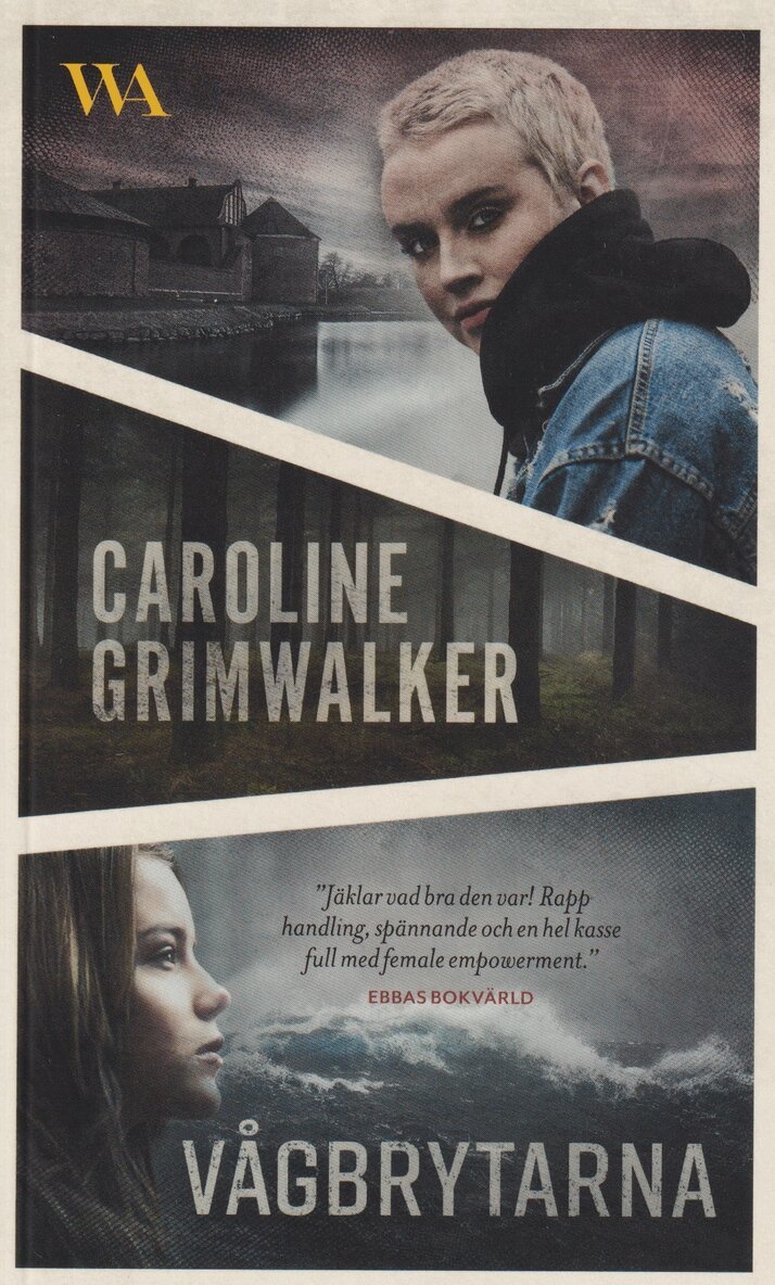 "Vågbrytarna" är första delen i Caroline Grimwalkers serie med samma namn en andlöst spännande trilogi med rejäl feministisk punch. Tre kvinnor binds samman i en oväntad vänskap av det faktum att de alla är offer för mäns våld. Vad händer när kvinnorna till sist får nog och gemensamt bestämmer sig för att ge tillbaka? Caroline Grimwalker debuterade som författare 2008 med den hyllade självbiografiska romanen Champagneflickan och har sedan dess gett ut en mängd böcker inom olika genrer. Hon har fått mycket uppmärksamhet för sina skräck- och fantasyberättelser och blivit utnämnd till Sveriges "skräckdrottning". Hon arbetar även som kursledare, skrivcoach, lektör och spökskrivare.