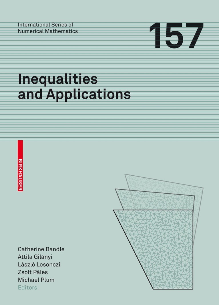Inequalities arise as an essential component in various mathematical areas. Besides forming a highly important collection of tools, e.g. for proving analytic or stochastic theorems or for deriving error estimates in numerical mathematics, they constitute a challenging research field of their own. Inequalities also appear directly in mathematical models for applications in science, engineering, and economics. This edited volume covers divers aspects of this fascinating field. It addresses classical inequalities related to means or to convexity as well as inequalities arising in the field of ordinary and partial differential equations, like Sobolev or Hardy-type inequalities, and inequalities occurring in geometrical contexts. Within the last five decades, the late Wolfgang Walter has made great contributions to the field of inequalities. His book on differential and integral inequalities was a real breakthrough in the 1970’s and has generated a vast variety of further research in this field. He also organized six of the seven “General Inequalities” Conferences held at Oberwolfach between 1976 and 1995, and co-edited their proceedings. He participated as an honorary member of the Scientific Committee in the “General Inequalities 8” conference in Hungary. As a recognition of his great achievements, this volume is dedicated to Wolfgang Walter’s memory. The “General Inequalities” meetings found their continuation in the “Conferences on Inequalities and Applications” which, so far, have been held twice in Hungary. This volume contains selected contributions of participants of the second conference which took place in Hajdúszoboszló in September 2010, as well as additional articles written upon invitation. These contributions reflect many theoretical and practical aspects in the field of inequalities, and will be useful for researchers and lecturers,as well as for students who want to familiarize themselves with the area.
