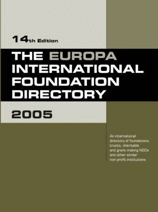 * Detailed information on 2,000 institutions* Includes international foundations, trusts, charitable and grant-making NGOs and other similar non-profit institutions* Provides a comprehensive picture of foundation activity on a world-wide scale*Introductory essays cover the history and development of the third sector; researching and applying to foundations; globalization and foundations* Foundations are arranged by country* Foundation centres/co-ordinating bodies are listed under a separate heading at the beginning of each chapter, where applicable, followed by the foundations, NGOs and charities, arranged alphabetically* Each entry contains the institution's name, postal, internet and e-mail addresses, telephone and fax numbers, together with full details about the foundation including, date of establishment, and details of the organization's function, activities, restrictions on grants, geographical area of activity, finances, publications and key executives* Foundations are fully indexed, alphabetically, by geographical region of activity and by their main areas of activity