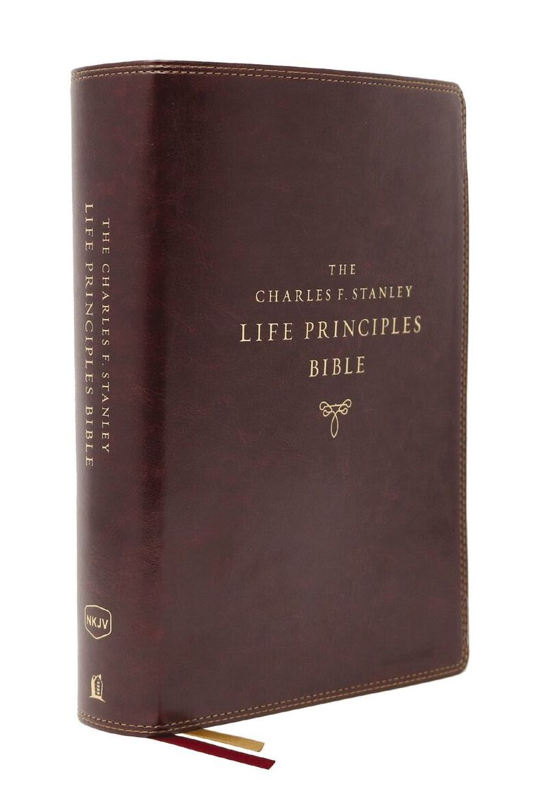 NKJV, Charles F. Stanley Life Principles Bible, 2nd Edition, Genuine Leather, Brown, Comfort Print