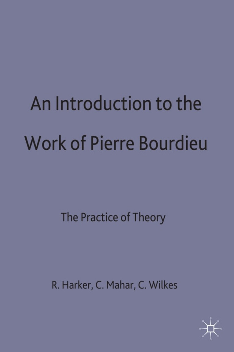 Pierre Bourdieu has been making a contribution to European sociology for the past 25 years. At present, he is Professor of Sociology at the College de France in Paris and author of many books including "Distinction and Homo Academicus" which have been translated from the French to the English. This book serves to introduce this important body of work to the Anglo-American world. In a cross-disciplinary collaboration Harker, Mahar and Wilkes provide the reader with the necessary tools to introduce a complex and rewarding body of the French sociology. Post modernist sociology has already been influenced by the French theorist Foucault, and it is likely that the generation to come will be reading Bourdieu.
