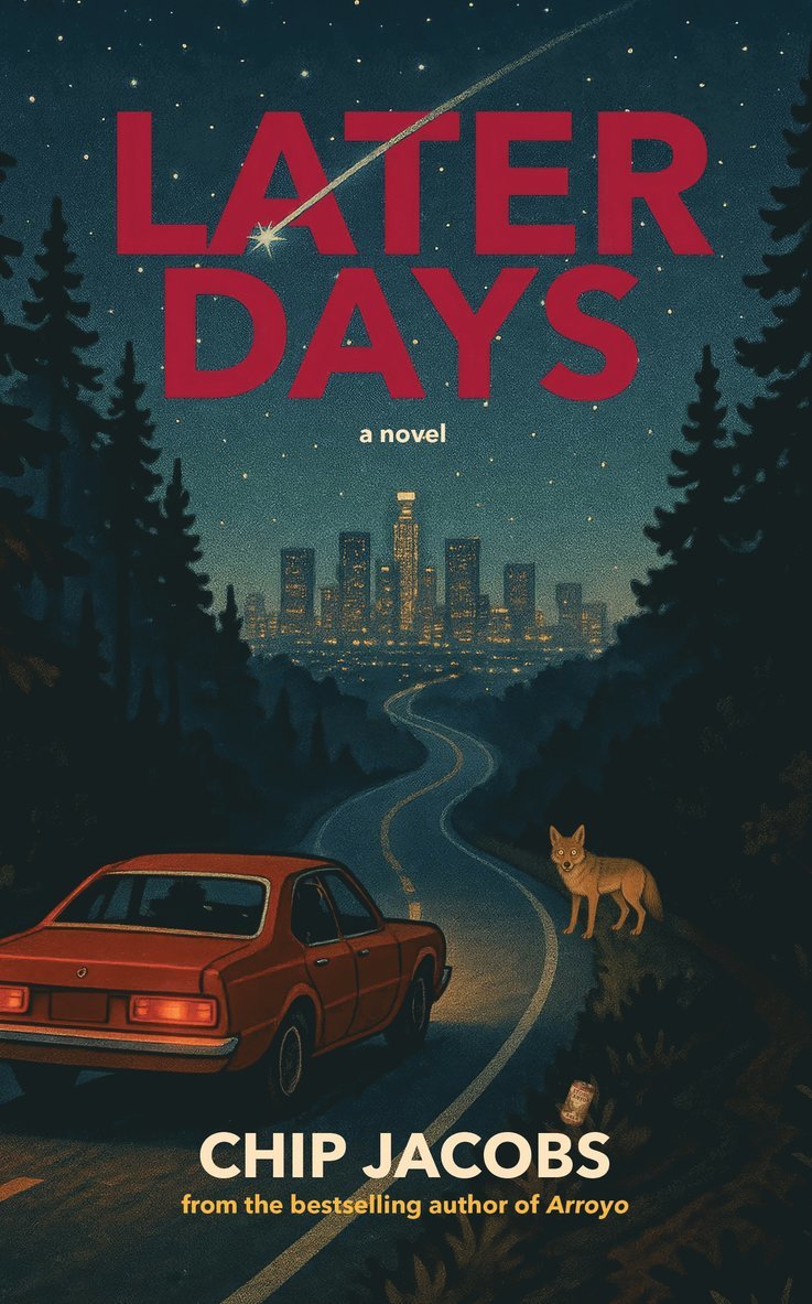 Now a USA Today Bestseller and 2025 Winner of the American Writing Award Winner for General Fiction! In an evocative follow-up to his Los Angeles Times bestselling Arroyo, Chip Jacobs returns with a gripping tale of brotherhood, recklessness, and footloose souls in the anything goes of late-seventies Southern California. As their elite, all-boys prep school turns coed, transforming from suburban Lord of the Flies to gender-roiled soap-opera, two unlikely friends—Luke Burnett and Denny Drummond—alternate rescuing each other from self-destruction amid troubled home lives. Eager to maximize their era as invincible seniors at Stone Canyon Prep, they and their pals commandeer Bob’s Big Boy, explore the secret world beneath Caltech, stumble into a possibly-supernatural lab animal, and grapple with near-ODs at a playoff game. Just as our heroes manage to graduate, their bond is shattered by a wild gunshot that'll haunt them for decades. Twenty years later, Luke is a high-powered journalist with a nosediving career, while Denny, a visionary software engineer, is socked by a terminal diagnosis. Desperate to make amends for that coyote shot, Denny guilts his estranged friend into helping him, all climaxing with a Hail Mary bid to demystify mortality, with an assist from Elizabeth Kubler-Ross, while reconnecting with what matters most.Later Days is a powerful exploration of the ties that bind and break us. Perfect for readers drawn to rollercoaster friendships, forgiveness, and the raw beauty of life skimming its edges to Near-Death Experience. With insight into Pasadena’s buried histories and the psychological baggage of growing up in the shadows of “Great Men” fathers, Jacobs’ second novel is as emotionally resonant as it is intellectually sharp.