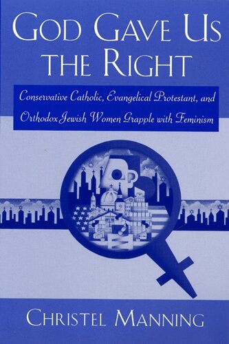 What does it mean to be a religious conservative, particularly for women, in America today? While it appears that people are returning to conservative religion because they are fed up with the excesses of liberalism, including feminism, a closer look at the lives of religious conservatives reveals a more complex reality. Drawing on two years of ethnographic research in Catholic, Jewish, and Protestant communities, Christel Manning explores the diversity among women who have returned to tradition. Arguing that America has undergone profound cultural and economic changes in the last thirty years, which create tension between women's lives and traditional gender roles, she demonstrates that conservative Catholics, Orthodox Jews, and Evangelical Protestants negotiate those tensions in different ways. Manning also shows that women in conservative religious communities share many of the same concerns as secular women.Manning looks at how the religious communities profiled have been influenced by feminist values and describes the ways in which these women negotiate gender roles at work, religious services, and at home. She explains how they deal with the inconsistencies created by their attempts to integrate feminist and traditionalist norms. In highly accessible prose, Manning examines their attitudes towards the feminist movement, its impact on American culture, and the extent to which the women seek to resist it. God Gave Us the Right explains how these different views of feminism reflect the diverse theologies and historical experiences of the three communities.