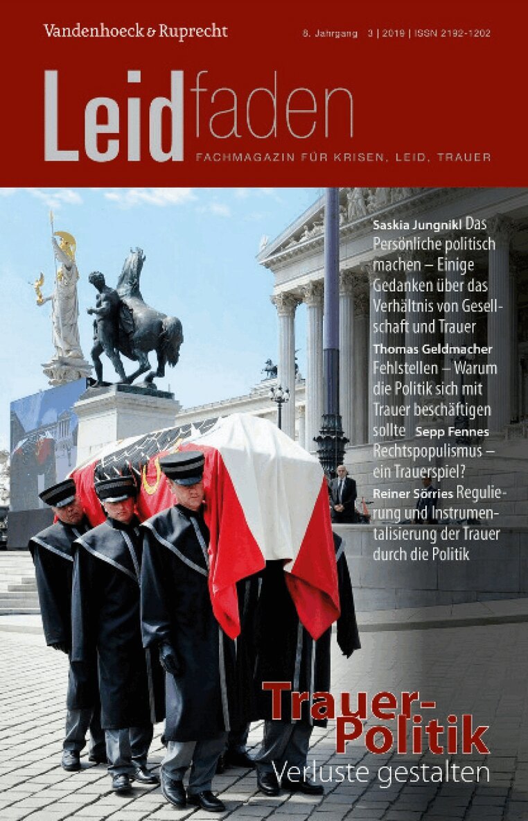 Weder der deutsche noch der österreichische Gesetzgeber kennt den Begriff der Trauer. Die Politik, so scheint es, drückt sich vor dem Umgang mit Trauer. Zumeist begnügt sie sich damit, bei traurigen Anlässen Betroffenheit zu zeigen und an Staatsbegräbnissen teilzunehmen. Doch ansonsten gehört für sie die Trauer eher in die Sphäre des Privaten. Warum ist das so? Woher kommt die Scheu in der Politik, sich mit Trauer zu beschäftigen? Und wie könnte angesichts der immer älter werdenden Bevölkerung und immer längerer Lebensarbeitszeiten eine Politik der Trauer und des Abschieds aussehen? Diesen und vielen anderen Fragen geht das Leidfaden-Themenheft zu "Trauerpolitik" nach.