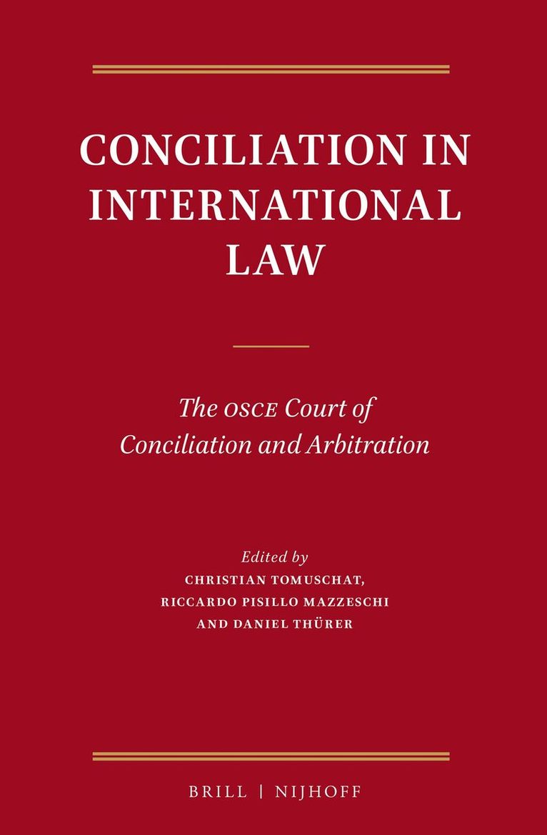 This volume collects the materials underlying the International Colloquium “Conciliation in the Globalized World of Today“, held on 11 and 12 June 2015 in Vienna under the auspices of the Court of Conciliation and Arbitration within the OSCE. The aim of the Colloquium was to examine the merits and possible shortcomings of this method of conflict resolution, and it concluded that the pros heavily outweigh the cons.This volume therefore draws the attention of everyone dealing with conflict management to those advantages. It does not end by providing a summary of conclusions to be drawn from the examination of the rules governing the OSCE Court and the practice of the other institutions considered. The reader will have to find out her/himself what experiences have been made in other fields where conciliation has been institutionalized as a dispute-settlement procedure. In this regard, the present book constitutes a treasury of lessons that cannot easily be brought down to a common denominator.