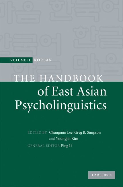 A large body of knowledge has accumulated in recent years on the cognitive processes and brain mechanisms underlying language. Much of this knowledge has come from studies of Indo-European languages, in particular English. Korean, a language of growing interest to linguists, differs significantly from most Indo-European languages in its grammar, its lexicon, and its written and spoken forms - features which have profound implications for the learning, representation and processing of language. This handbook, the third in a three-volume series on East Asian psycholinguistics, presents a state-of-the-art discussion of the psycholinguistic study of Korean. With contributions by over sixty leading scholars, it covers topics in first and second language acquisition, language processing and reading, language disorders in children and adults, and the relationships between language, brain, culture, and cognition. It will be invaluable to all scholars and students interested in the Korean language, as well as cognitive psychologists, linguists, and neuroscientists.