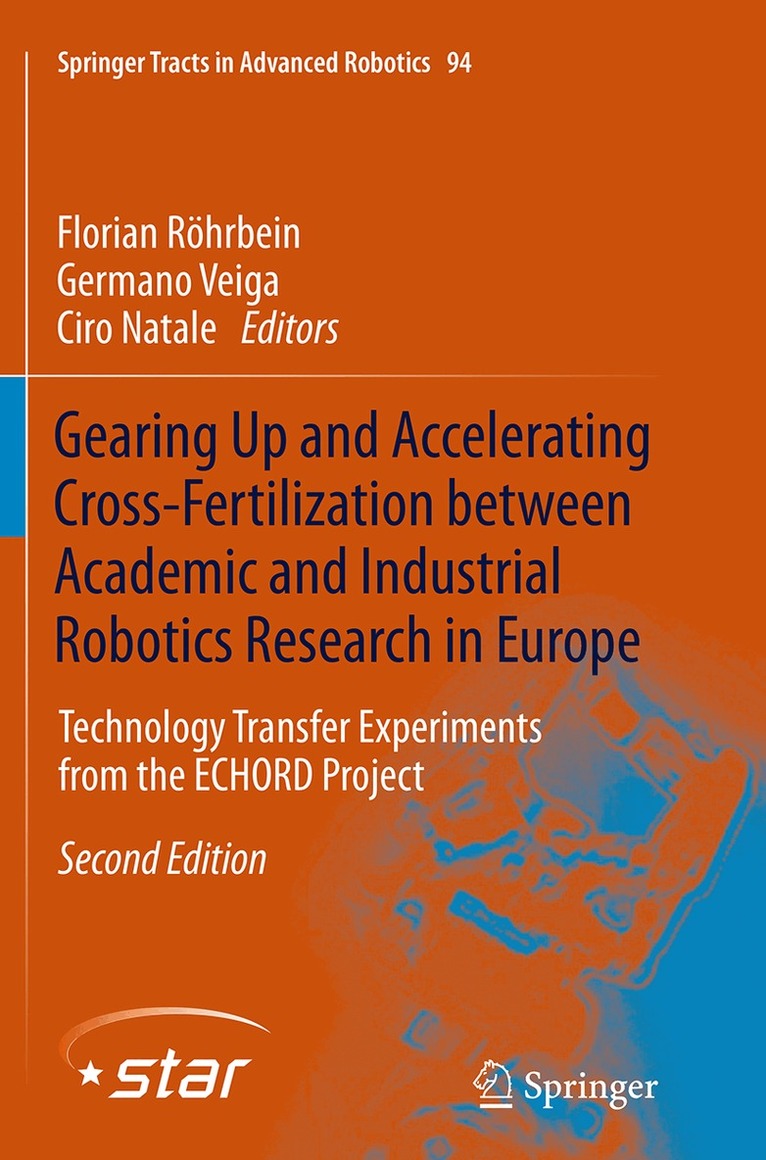 This monograph by Florian Röhrbein, Germano Veiga and Ciro Natale is an edited collection of 15 authoritative contributions in the area of robot technology transfer between academia and industry. It comprises three parts on Future Industrial Robotics, Robotic Grasping as well as Human-Centered Robots. The book chapters cover almost all the topics nowadays considered ‘hot’ within the robotics community, from reliable object recognition to dexterous grasping, from speech recognition to intuitive robot programming, from mobile robot navigation to aerial robotics, from safe physical human-robot interaction to body extenders. All contributions stem from the results of ECHORD – the European Clearing House for Open Robotics Development, a large-scale integrating project funded by the European Commission within the 7th Framework Programme from 2009 to 2013. ECHORD’s two main pillars were the so-called experiments, 51 small-sized industry-driven research projects and the structured dialog a powerful interaction instrument between the stakeholders. The results described in this volume are expected to shed new light on innovation and technology transfer from academia to industry in the field of robotics.