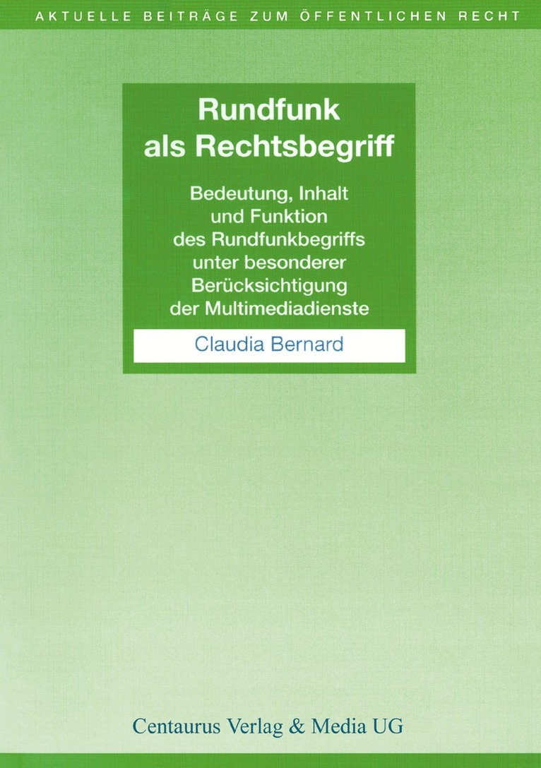 Bedeutung, Inhalt und Funktion des Rundfunkbegriffs unter besonderer Berücksichtigung der Multimediadienste