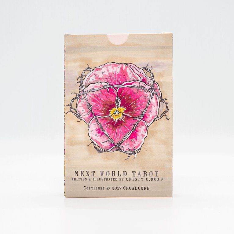 An oversize gallery-quality hardcover book featuring all of the finished art from Road's popular tarot, along with full card descriptions in both Spanish and English, as well as bonus sketches and other material. Featuring body outlaws, endangered cultures, and anti-colonial belief systems, THE NEXT WORLD TAROT envisions a world where justice relies on respect and revolutionary love. The Fool's Journey is about smashing systematic oppression, owning their truths, being accountable to the people and places that support them, and taking back a connection to their body that may have been lost through trauma or societal brainwashing. The NEXT WORLD TAROT is a visual spectacle of both the battle cry and the re-connection between outcasts and their criminalized identities.