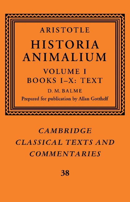 David Balme's major critical edition of Aristotle's largest and perhaps least studied treatise is based on a collation of the 26 known extant manuscripts and a study of the early Latin translations. Begun in 1975, with his work towards the Loeb editio minor of books VII-X, this edition of all ten books, including a very full apparatus criticus, was largely complete by 1989 when Professor Balme died, but it needed extensive work to put it in publishable form. This work has been carried out by Allan Gotthelf, Balme's friend and associate. Volume I of the edition contains the complete text of the Historia Animalium, the critical apparatus, and Balme's introduction to the manuscripts, expanded and updated with the assistance of Friederike Berger, and in consultation with the editors of forthcoming editions of the extant medieval translations. A substantial index to the text has been provided by Liliane Bodson in collaboration with Professor Gotthelf.