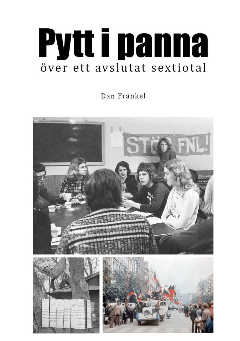 Slutet av sextiotalet. En brytningstid i ett Sverige som står med ena benet rotat i bondesamhället och beredskapsåren och med det andra berett att ta klivet ut i den moderna tiden. Gamla värderingar och traditioner ställs på huvudet och för en hel ungdomsgeneration är protesterna mot Vietnamkriget symbolen för denna rörelse. Året är 1967 och Henrik tar studenten, den sista årskullen i det gamla gymnasiet med studentexamen på riktigt. Han träffar Katja Karlsson, dotter till den kände fotografen och författaren Kåkå och själv känd från teve och pappans böcker. Tillsammans och med stöd av Kåkå möter de den nya tiden. De engagerar sig i FNL-rörelsen och blir misshandlade av poliser i en Vietnamdemonstration. På en semesterresa till Tjeckoslovakien upplever de den sovjetiska invasionen av landet. Kårhusockupationen, almstriden och de vilda strejkerna i gruvstrejkens kölvatten är andra händelser som virvlar förbi i den allt snabbare förändrade omvärlden. Det finns dock även en annan sida av den nya tiden. Alla klarar inte mötet med den, några går bokstavligt och bildligt under. Genom hela boken bär Henrik på en sorg efter de tragiska händelser som drabbat hans äldsta väninna, Siw-Inger. Detta är berättelsen om ett Sverige i förvandling och om händelser som kom att prägla den stora efterkrigsgenerationen, och därmed också hela det svenska samhället för lång tid framåt. Det är också historien om tre fäder som på olika sätt sviker sina barn. Dan Fränkel är född 1948, vilket innebär att han, i likhet med bokens huvudpersoner, var ung under de stormiga åren i slutet av sextiotalet. Han har tidigare gett ut två fackböcker om management, Råd med kompetens och Ledning handlar om människor. Intervju med författaren: https://www.vulkanmedia.se/forfattarintervjuer/pytt-i-panna-over-ett-avslutat-sextiotal-av-dan-frankel/