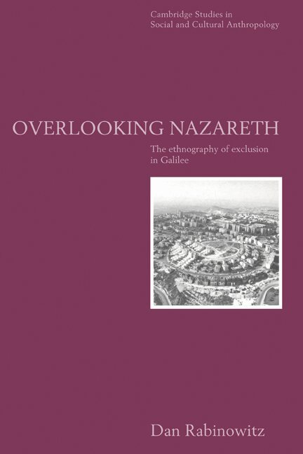 A sophisticated and engaging ethnographic account of the Palestinian citizens of Israel, and the first since the 1970s, Overlooking Nazareth examines specific situations of friction, conflict and co-operation in Natzerat Illit. This Israeli new town is built on formerly Palestinian land, just outside the biblical town of Nazareth, and has a population of 25,000 Jewish Israelis and 3,500 Palestinians. Dr Rabinowitz has written widely on the current political situation in Israel and has conducted extensive fieldwork in Galilee, and he describes his study as a guided walk along a border, a sketch of interfaces 'where the complex, often paradoxical aspects of the border situation are negotiated and acted out most vividly'. He highlights the extent to which anti-Palestinian sentiments for which the town is known actually reflect widespread views of most Israelis. This is a major contribution to our understanding of the confrontation between Israelis and Palestinians. It offers powerful critique of reflexive anthropology and offers fresh insights into notions of ethnicity and identity, nationalism and liberalism.