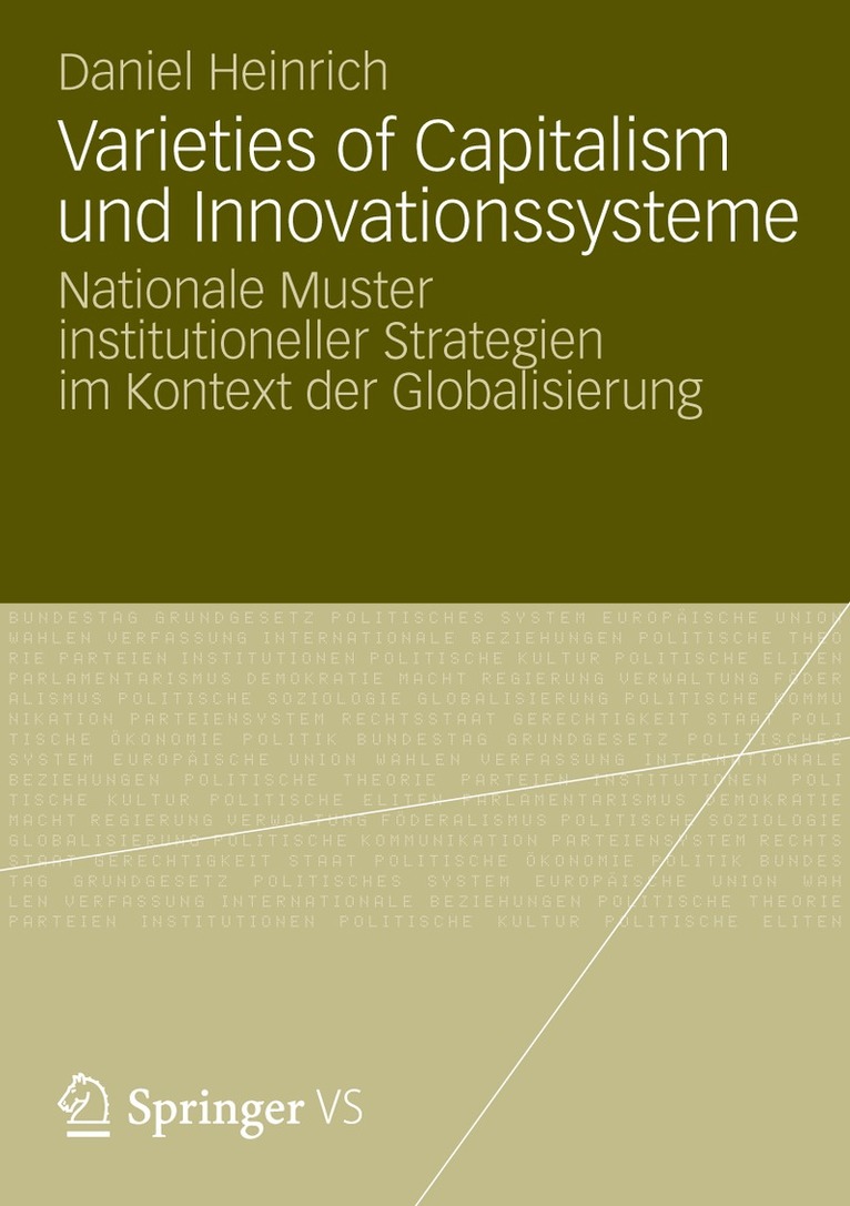Daniel Heinrich analysiert den Ansatz der Varieties of Capitalism (VoC) aus der politischen Ökonomie sowie institutionelle Unterschiede in nationalen Innovationssystemen. Er entwickelt ein Modell institutioneller Hierarchien, das die Funktion hat, institutionellen Wandel in Marktökonomien anzupassen und zu endogenisieren. Im Ergebnis erweisen sich Innovationssysteme liberaler Marktökonomien (Angelsächsische Länder) als abhängig vom militärisch-industriellen Komplex, während koordinierte Marktökonomien (kontinentales Westeuropa) vom Humankapital profitieren.