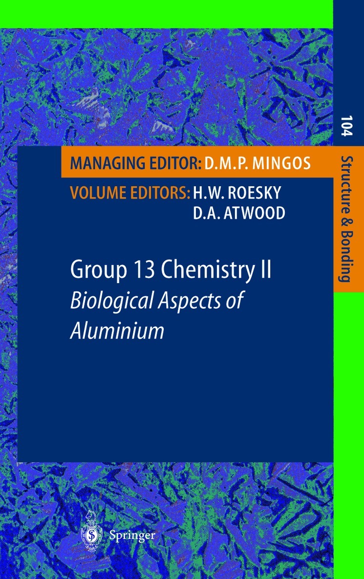 Aluminum, bound almost exclusively to oxygen in various combinations, is the most abundant metal in the earth's crust and, therefore, of great commercial potential. Once methods were developed (in the 1880's) to free useable quantities of the element from oxygen, applications for the element began developing rapidly. This growth has resulted in the ubiquity of the metal in today's world. Therefore it can be found intentionally introduced in many products in direct contact with human beings. It is commonly known that soluble forms of aluminum aretoxic to living organisms. However, aluminum is not known to be bioavailable under everyday conditions. In fact, the solubility product of common aluminum compounds, such as AI(OH)3 is so low as to make it essentially unavailable. This volume of Structure and Bonding seeks to provide in one source, a resource where the basic science related to aluminum toxicity may be obtained. It should be stressed that this volume is not intended to be a warning to avoid contact with aluminum. Living organisms have adequate defenses to prevent aluminum toxicity under normal conditions. Rather the volume was created to simply provide an understanding of the biological effects of aluminum. As such, the present volume should be considered in the context of the companion volumes in this three part series of Structure and Bonding. The first volume was devoted to fundamental developments in group 13 chemistry.