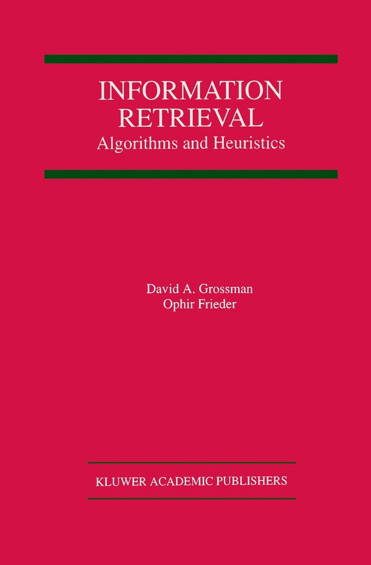Information Retrieval: Algorithms and Heuristics is a comprehensive introduction to the study of information retrieval covering both effectiveness and run-time performance. The focus of the presentation is on algorithms and heuristics used to find documents relevant to the user request and to find them fast. Through multiple examples, the most commonly used algorithms and heuristics needed are tackled. To facilitate understanding and applications, introductions to and discussions of computational linguistics, natural language processing, probability theory and library and computer science are provided. While this text focuses on algorithms and not on commercial product per se, the basic strategies used by many commercial products are described. Techniques that can be used to find information on the Web, as well as in other large information collections, are included. This volume is an invaluable resource for researchers, practitioners, and students working in information retrieval and databases. For instructors, a set of Powerpoint slides, including speaker notes, are available online from the authors.