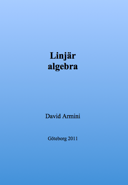 Ha¨r behandlas vektorer, ba°de generella och geometriska, matriser, determinanter, egenva¨rden, inverser, linjer, plan, avsta°nd, mm. Framsta¨llningen a¨r kondenserad och med tonvikt pa° metod. Exemplen ma°nga, enkla och fokuserar ocksa° pa° metod. Det som finns upptaget a¨r det mesta man beho¨ver ka¨nna till inom omra°det. Ha¨ftet inga°r i en serie ha¨ften som behandlar de flesta delarna av matematik som studenter kan va¨ntas sto¨ta pa° under de fo¨rsta a°ren vid tekniska och naturvetenskapliga ho¨gskole- och universitets-utbildningar. Fo¨rfattaren David Armini har jobbat flera a°r vid Chalmers Tekniska Ho¨gskola och Go¨teborgs Universitet med undervisning i matematik vid ett flertal av linjerna och programmen. Han har a¨ven fo¨rela¨st i datalogi och fo¨rfattat utredningar kring pedagogiska fra°gesta¨llningar.