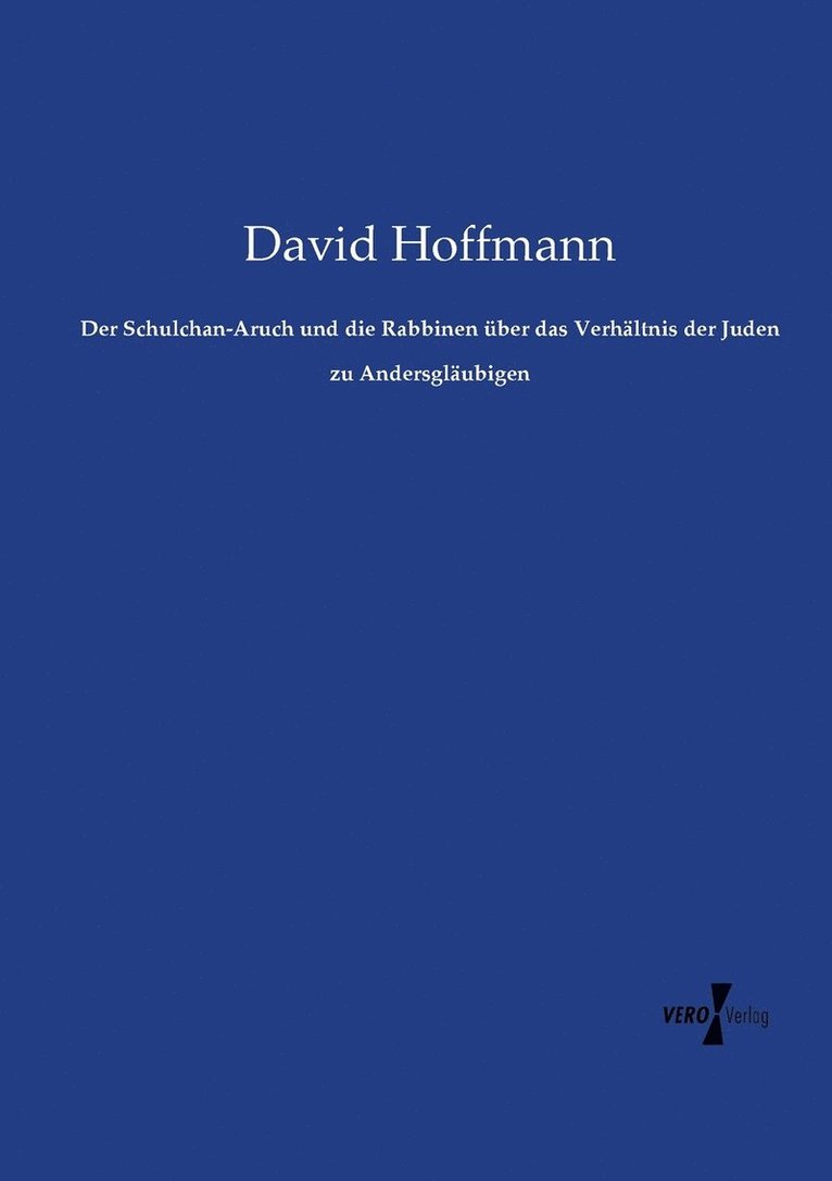 Schulchan-Aruch Und Die Rabbinen Über Das Verhältniss Der Juden Zu Andersgläubigen
