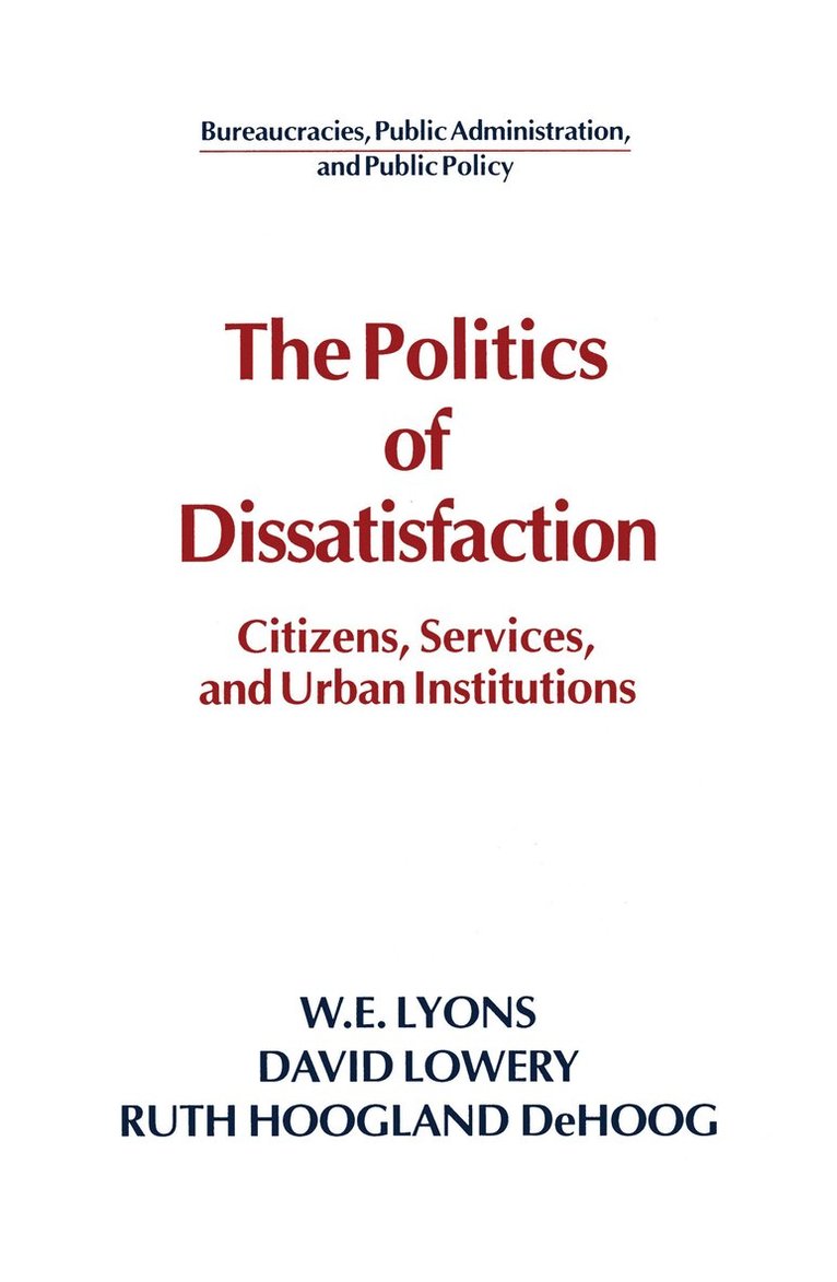 The Politics of Dissatisfaction: Citizens, Services, and Urban Institutions is destined to be a classic in public administration and public policy; it makes major theoretical and empirical contributions to the literature in both fields. It is a rigorous empirical attempt to assess the public choice view of citizenship and local government. The research upon which this book is based was founded on conversations between two of its authors, W. E. Lyons and David Lowery, during the early 1980s.