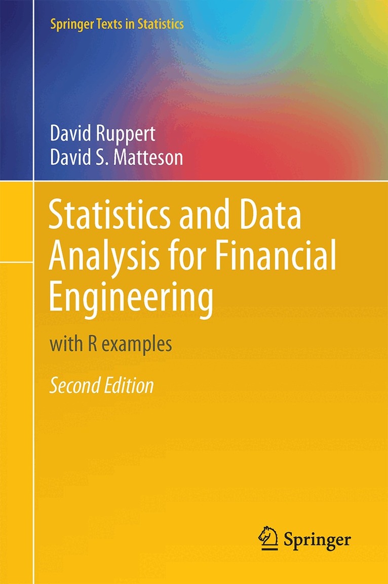 Financial engineers have access to enormous quantities of data but need powerful methods for extracting quantitative information, particularly about volatility and risks. Key features of this textbook are: illustration of concepts with financial markets and economic data, R Labs with real-data exercises, and integration of graphical and analytic methods for modeling and diagnosing modeling errors. Despite some overlap with the author's undergraduate textbook Statistics and Finance: An Introduction, this book differs from that earlier volume in several important aspects: it is graduate-level; computations and graphics are done in R; and many advanced topics are covered, for example, multivariate distributions, copulas, Bayesian computations, VaR and expected shortfall, and cointegration. The prerequisites are basic statistics and probability, matrices and linear algebra, and calculus.Some exposure to finance is helpful.