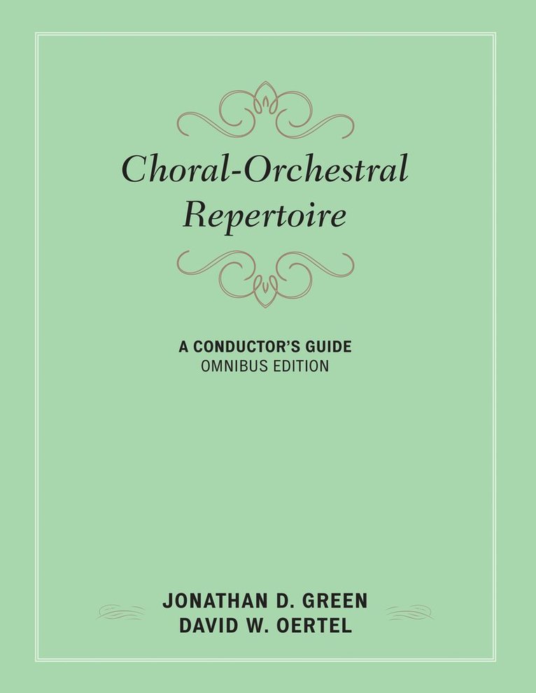 Choral-Orchestral Repertoire: A Conductor’s Guide, Omnibus Edition offers an expansive compilation of choral-orchestral works from 1600 to the present. Synthesizing Jonathan D. Green’s earlier six volumes on this repertoire, this edition updates and adds to the over 750 oratorios, cantatas, choral symphonies, masses, secular works for large and small ensembles, and numerous settings of liturgical and biblical texts for a wide variety of vocal and instrumental combinations. Each entry includes a brief biographical sketch of the composer, approximate duration, text sources, performing forces, available editions, and locations of manuscript materials, as well as descriptive commentary, a discography, and a bibliography. Unique to this edition are practitioner’s evaluations of the performance issues presented in each score. These include the range, tessitura, and nature of each solo role and a determination of the difficulty of the choral and orchestral portions of each composition. There is also a description of the specific challenges, staffing, and rehearsal expectations related to the performance of each work. Choral-Orchestral Repertoire is an essential resource for conductors and students of conducting as they search for repertoire appropriate to their needs and the abilities of their ensembles.