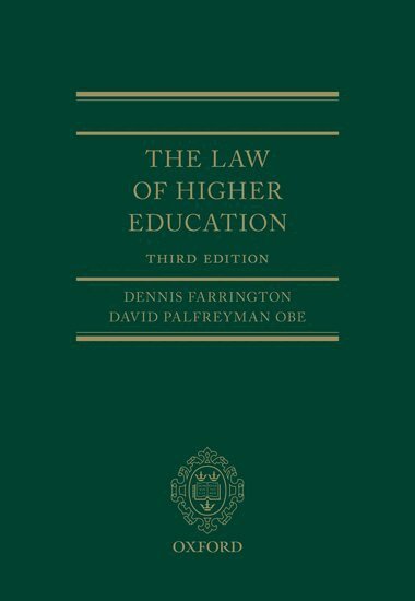 Written by two leading higher education practitioners, this comprehensive and practical guide to the law of higher education in the UK provides extensive analysis of the complex legal framework in which universities work and the remedies which may be sought in the event of disputes.The Law of Higher Education has been fully updated to take account of the many legislative changes which have come into force since the publication of the second edition in 2012. New sector legislation in place in England, Scotland and Wales, with fundamental changes in the way higher education is regulated and changes in the general law (e.g. data protection, prevention of terrorism, consumer protection) and how they affect the operation of institutions are all dealt with in detail, with reference to and analysis of the relevant case law throughout. Additionally attention is given to new responsibilities faced by institutions under the General Data Protection Regulation.Although focussing on UK laws, material on the international context is examined, which remains particularly important as institutions are increasingly involved in international exchanges and collaborations, as well as being subject to the increasing globalisation of higher education.