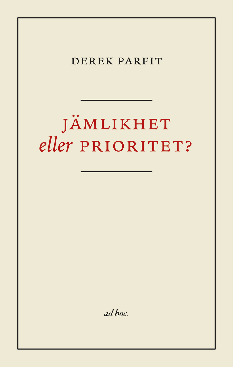 Derek Parfit var en av vår tids mest originella filosofer och hans "Jämlikhet eller prioritet?" är oumbärlig för alla som funderar över jämlikhet och moraliska skyldigheter. På flera sätt gav Parfit moralfilosofin en ny riktning och formulerade nya och ofta oväntade problem. Bland annat gjorde han banbrytande bidrag till diskussionen om personlig identitet, och om våra skyldigheter gentemot framtida generationer. Dessutom synliggjorde han allvarliga misstag i våra moraluppfattningar. I denna text undersöker Parfit vad vi menar med jämlikhet, och framför allt om vi bör värdera jämlikhet, och i så fall hur. Parfit undrar om det inte är viktigare att bistå dem som har det sämst i stället för att bry sig så mycket om skillnader mellan människor. Derek Parfit (1942–2017) var verksam vid All Souls College i Oxford i nära 50 år och undervisade även vid Harvard, Rutgers och universitetet i New York. Han var ledamot i British Academy och fick 2014 Rolf Schockpriset. Hans bok "Reasons and Persons" från 1984 är en modern klassiker.