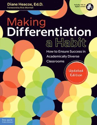 Updated edition of a popular resource helps teachers seamlessly integrate differentiation practices into their daily routine.In this updated edition of her guide to daily differentiated instruction, Diane Heacox outlines the critical elements for success in today’s classrooms. She gives educators evidence-based differentiation strategies and user-friendly tools to optimize teaching, learning, and assessment for all students. New features include an expanded section on grading, information on connections between personalized learning and differentiation, integration of strategies with tier one instructional interventions, scaffolding strategies, revised planning templates, and updated resources, which include digital tools and apps for assessment. Digital content includes customizable forms from the book. A free downloadable PLC/Book Study Guide is available at freespirit.com/PLC.