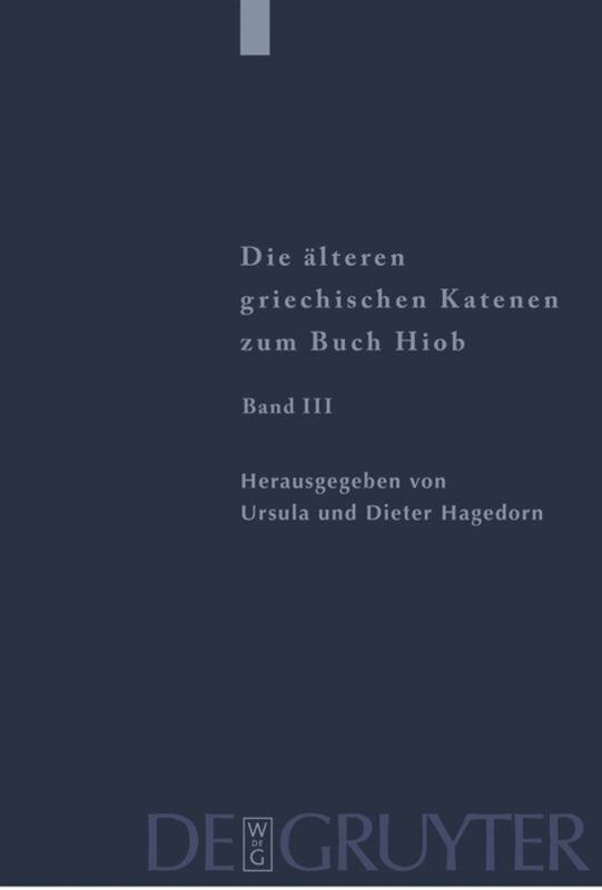 Der abschließende Band der Edition der "älteren griechischen Katenen zum Buch Hiob" (I: Einleitung, Prologe und Epiloge, Fragmente zu Hiob 1,1-8,22 [PTS 40]; II: Fragmente zu Hiob 9,1-22,30 [PTS 48] und III: Fragmente zu Hiob 23,1-42,17 [PTS 53]) enthält neben einigen Anhängen (darunter eine deutsche Übersetzung der Fragmente des Polychronios und die Darlegung, dass Origenes wohl auch der Autor der unter den Namen Athanasios und Methodios tradierten Fragmente ist) die Register zu den Bänden I-III, nämlich Verzeichnisse der in der Edition enthaltenen Fragmente, geordnet nach Autoren, der Bibelzitate, der Personennamen usw. und ein allgemeines Wörterverzeichnis mit Angabe aller vorkommenden Wortformen.