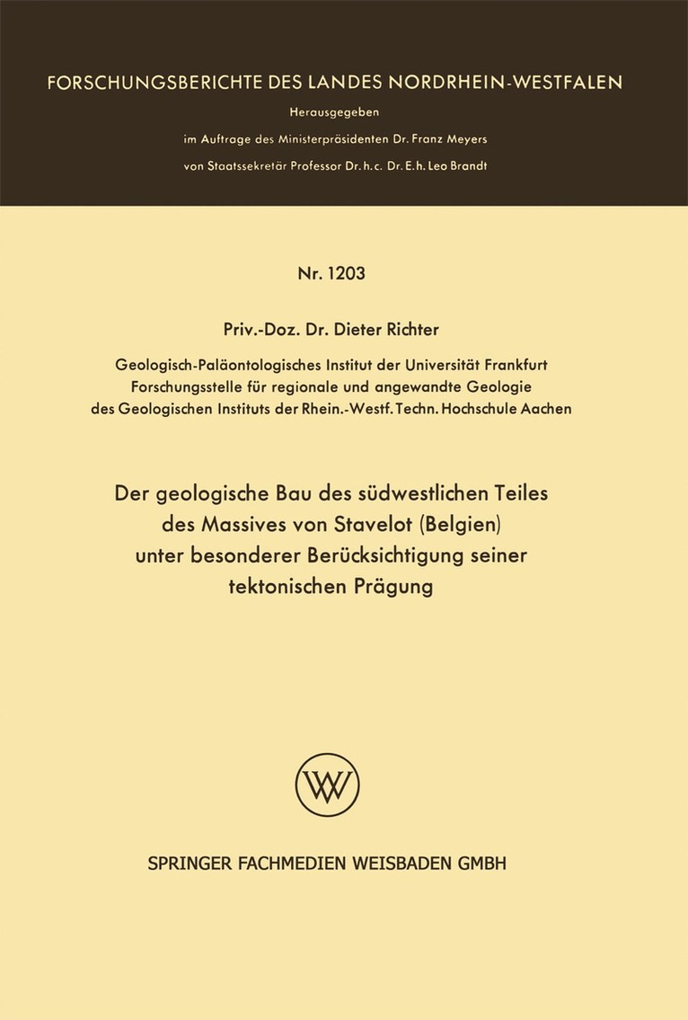 Der geologische Bau des südwestlichen Teiles des Massives von Stavelot (Belgien) unter besonderer Berücksichtigung seiner tektonischen Prägung