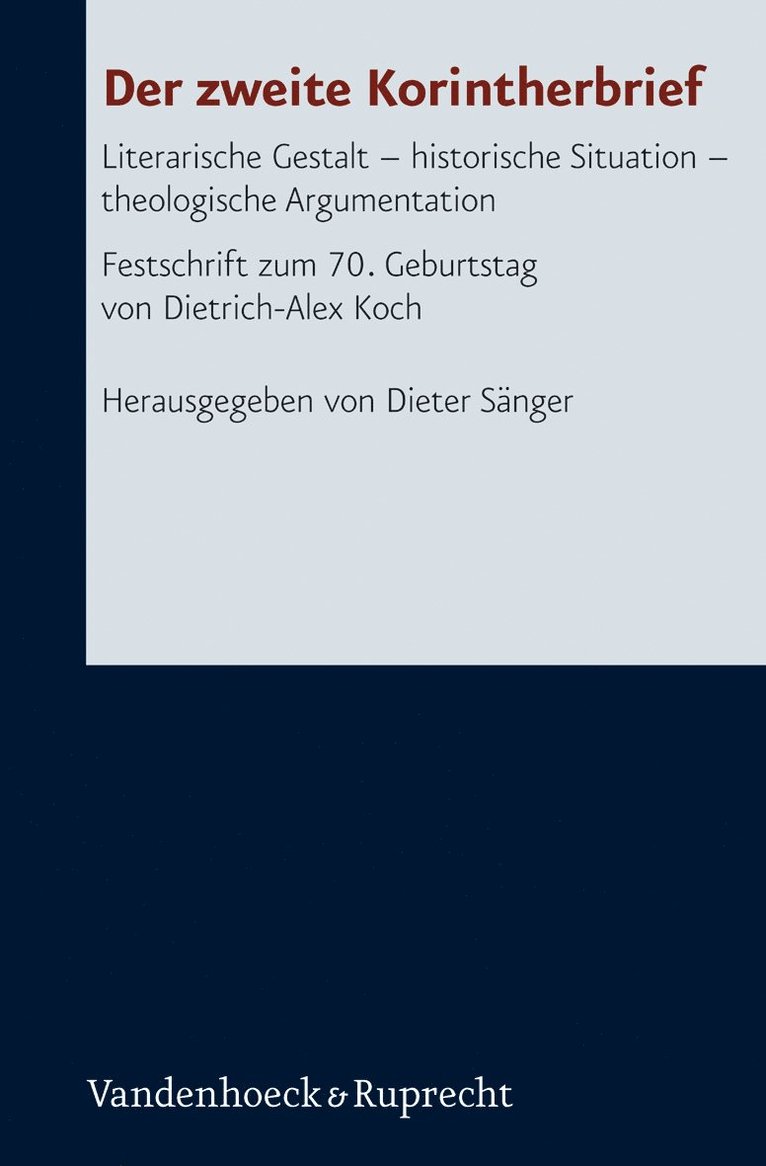 The essays are dealing with central topics concerning the Corinthian correspondence with special reference to 2 Corinthians. Some of the studies present a fresh look on the much disputed Pauline pneuma/gramma-antithesis resp. Paul’s understanding of the „old“ and „new“ covenant. Other essays examine e.g. the unity of 2 Corinthians, the structure of arguments in ch. 10–13, the background and purpose of the mission against Paul, the history and theological foundation of the collection for Jerusalem, the Wirkungsgeschichte of 2 Corinthians in the New Testament writings, or shed new light on the interpretation of relevant passages within the context of 2 Corinthians.