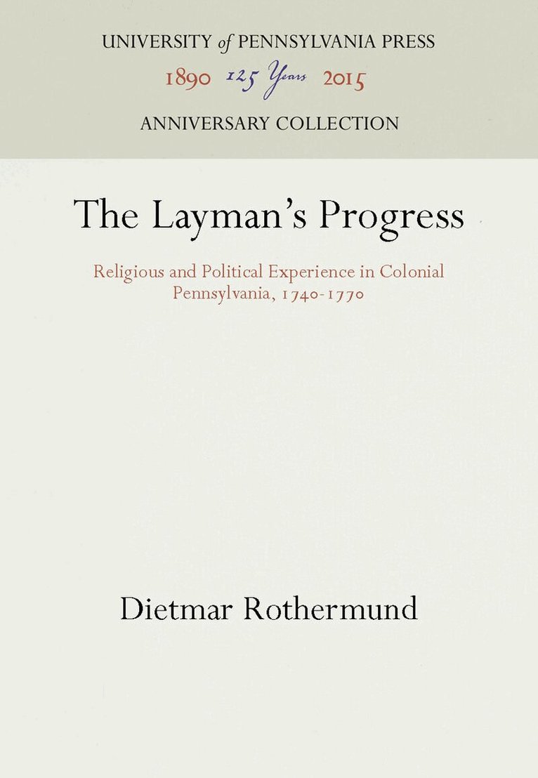 The religious and political activities in Pennsylvania during the period between the Great Awakening and the eve of the Revolution (1740-1770) were at once typical and unique: typical as far as he general trend of American experience is concerned, unique, however, with regard to the participants and many of the issues at stake.This volume provides a balanced picture of these activities and, more specifically, describes and interprets three interrelated trends that obtained during this period-the transformation of diverse groups into a public, the shift from religious to secular interests, and the sequence of revivalistic fervor and denominational consolidation. These trends are considered with respect to the long-term developments of history, as well as with regard to their short-term interaction in the particular situation of Colonial Pennsylvania. The pattern of the interaction of these trends is delineated in detail with a view to examining the practical evolution of American Democracy and the roots of a distinct American civilization.It is noteworthy that The Layman's Progress attempts to introduce a new point of view into American Colonial historiography by focusing on contemporary attitudes rather than interpreting the period from the viewpoint of subsequent events. To this end the author has utilized a great deal of unpublished source material, some of which now appears for the first time in the Appendix. In addition, an effort has been made to emphasize those aspects of colonial history that have heretofore been largely neglected. Thus, the author gives special consideration to the interaction of the various ethnic and religious groups; more attention is devoted to religious affairs than to political, and the German groups are examined in closer detail than are the English groups.Thoroughly documented, clearly and imaginatively written, The Layman's Progress is a significant contribution to American Colonial historiography.