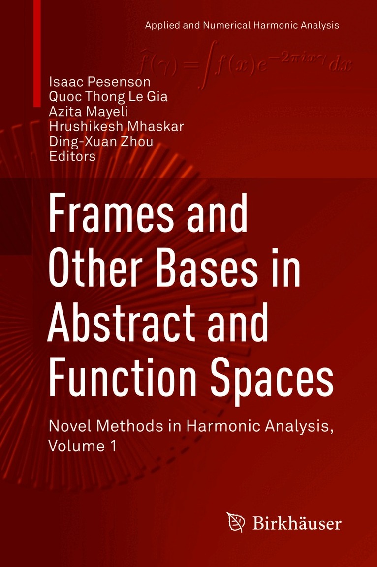 The first of a two volume set on novel methods in harmonic analysis, this book draws on a number of original research and survey papers from well-known specialists detailing the latest innovations and recently discovered links between various fields. Along with many deep theoretical results, these volumes contain numerous applications to problems in signal processing, medical imaging, geodesy, statistics, and data science. The chapters within cover an impressive range of ideas from both traditional and modern harmonic analysis, such as: the Fourier transform, Shannon sampling, frames, wavelets, functions on Euclidean spaces, analysis on function spaces of Riemannian and sub-Riemannian manifolds, Fourier analysis on manifolds and Lie groups, analysis on combinatorial graphs, sheaves, co-sheaves, and persistent homologies on topological spaces. Volume I is organized around the theme of frames and other bases in abstract and function spaces, covering topics such as:The advanced development of frames, including Sigma-Delta quantization for fusion frames, localization of frames, and frame conditioning, as well as applications to distributed sensor networks, Galerkin-like representation of operators, scaling on graphs, and dynamical sampling.A systematic approach to shearlets with applications to wavefront sets and function spaces.Prolate and generalized prolate functions, spherical Gauss-Laguerre basis functions, and radial basis functions.Kernel methods, wavelets, and frames on compact and non-compact manifolds.