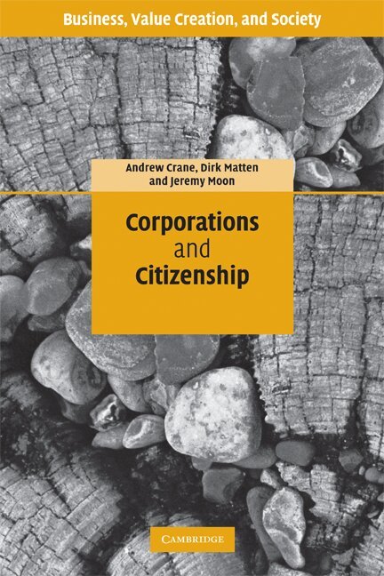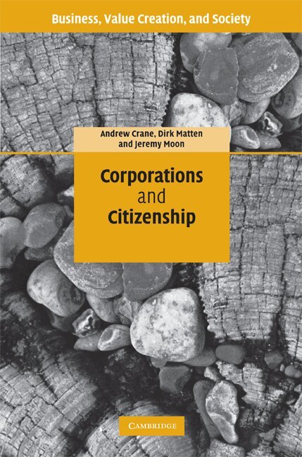 It is widely accepted that corporations have economic, legal, and even social roles. Yet the political role of corporations has yet to be fully appreciated. Corporations and Citizenship serves as a corrective by employing the concept of citizenship in order to make sense of the political dimensions of corporations. Citizenship offers a way of thinking about roles and responsibilities among members of polities and between these members and their governing institutions. Crane, Matten and Moon provide a rich and multi-faceted picture that explores three relations of citizenship - corporations as citizens, corporations as governors of citizenship, and corporations as arenas of citizenship for stakeholders - as well as three contemporary reconfigurations of citizenship - cultural (identity-based), ecological, and cosmopolitan citizenship. The book revolutionizes not only our understanding of corporations but also of citizenship as a principle of allocating power and responsibility in a political community.
