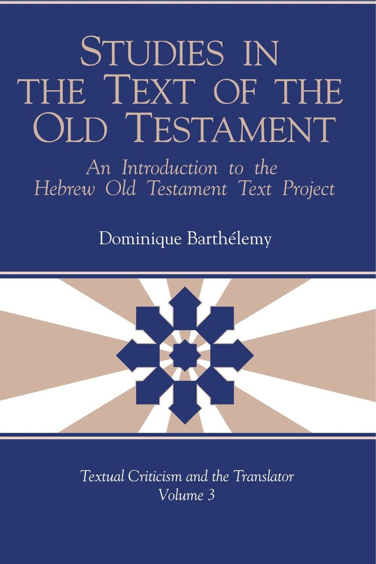 Studies in the Text of the Old Testament offers to the English-speaking world the combined introductions to the first three volumes of Dominique Barthélemy’s Critique Textuelle de l’Ancien Testament. CTAT was the culmination of the Hebrew Old Testament Text Project, launched by the United Bible Societies in 1969 and carried out by an international team of Old Testament textual critics under the leadership of Eugene Nida.As Emanuel Tov has stated, these introductions form “an almost complete introduction” to the textual criticism of the Hebrew Bible. They hold an important place in Old Testament textual criticism and can stand alone, apart from the detailed discussions of the textual problems found in the volumes. Part one surveys the history of OT textual criticism “from its origins to J. D. Michaelis” and presents the Hebrew Old Testament Text Project and its goals. Part two describes in detail the background of the modern versions that the HOTTP took into account in its work. Part three, the most extensive section, discusses the textual witnesses—the different forms of the Hebrew text and the contribution of the ancient versions. As his concluding program for a critical edition makes clear, the groundbreaking work of Barthélemy and the HOTTP served as the basis for the new Biblia Hebraica Quinta, which began publication in 2004.UBS undertook the HOTTP to offer Bible translators help in applying the results of textual criticism to their work, but there is no doubt that many others will benefit from this work, as well as the other volumes in the series “Textual Criticism and the Translator.”