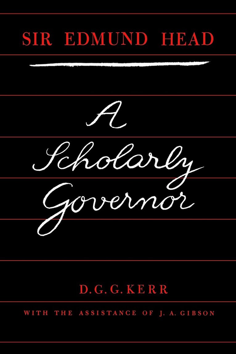 A century ago, in 1854, Sir Edmund Head became governor general of Canada. His earlier career as Oxford don, chief Poor Law commissioner during the "hungry forties," and lieutenant-governor of New Brunswick, had prepared him to succeed Lord Elgin in this senior post in the British colonial service. Combining the outlook and training of a scholar with a long administrative experience in difficult posts, Head had a clear insight into British North American problems, and was able to guide British and Canadian politicians toward their solution in the creation of the new Dominion of Canada. Later, as Governor of the Hudson's Bay Company, he carried negotiations for the transfer of the Company's territories to the verge of conclusion before his sudden death in 1868.Neglected until recently by Canadian historians, the significance of the work of one of Britain's greatest colonial administrators is only now beginning to be appreciated. Professor Kerr's biography creates a lively and convincing picture of Head and colonial life at a critical period. Based on careful research among the public documents of the period, and making use as well of Head's private letters to close friends in England and North America, it is the first full-scale treatment available of this philosophic and capable governor whose influence on Canadian national development was so important.