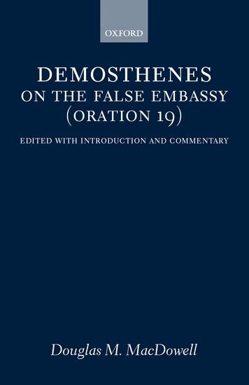 In 346 BC. the Athenians negotiated a peace treaty with King Philip II of Macedon, but afterwards one of the Athenian ambassadors, Demosthenes, accused another, Aiskhines, of accepting a bribe from Philip to contrive that the terms of the treaty should be favourable to him. The case came to trial three years later, and On the False Embassy is the speech which Demosthenes prepared for the prosecution. It is one of the most famous pieces of ancient oratory, and it is also one of the principal sources of information about the politics of its period. This volume is on the same lines as Professor MacDowell's previous edition of Demosthenes' speech Against Meidias. It includes an introduction concentrating especially on the historical circumstances, a revised Greek text based on fresh study of the manuscripts, an English translation on pages facing the text, and the first detailed commentary on the speech for over a hundred years.