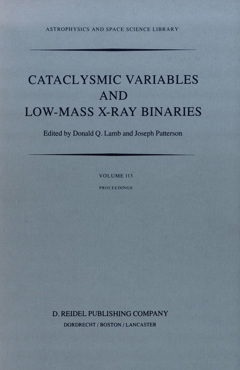Since 1976 a meeting devoted to recent research on cataclysmic variables ("CV workshop") has been held annually somewhere in North America. Many of the meetings have been held - following a custom older than anyone reading this book - in locations with well-known recreational potential (e. g. Santa Cruz, CA; Boulder, CO). We thought hard about this custom while contemplating the possibility of organi zing a meeting in Massachusetts in the middle of winter. Nobody wants their meeting to go down in history as the smallest and dullest, and it ~ surely be the coldest. But on occasion, meeting organizers have defied custom and scheduled meetings for less~than-trendy places, and gotten away with it (Ur·bana, IL and Rochester, NY must be reckoned as examples of this). Encouraged by the spatial and temporal proximity of the American Astronomical Society meeting (Boston, January 9-12), we thought we might get away with it again, and so came to organize a meeting for January 12-15, 1983, in Cambridge, MA. There was another reason for a meeting at this time and place, we loftily proclaimed in early mailings. No one doubts that the CV's are closely related to the low-mass X-ray binaries ("LMXB' s"), in which the accreting star is usually, or perhaps always, more compact than a white dwarf. Many of the general characteristics of LMXB's sound pretty familiar to any student of CV's: orbital periods in the range 0.