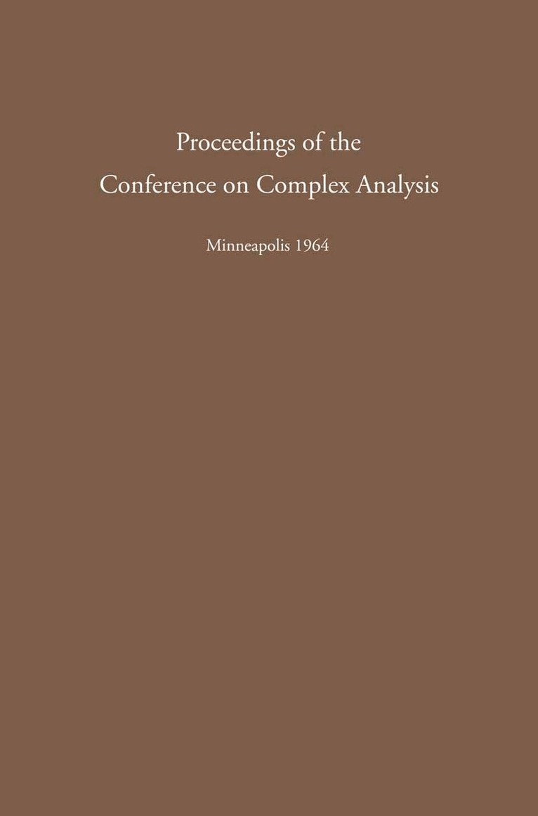 This volume contains the articles contributed to the Minnesota Con ference on Complex Analysis (COCA). The Conference was held March 16-21, 1964, at the University of Minnesota, under the sponsorship of the U. S. Air Force Office of Scientific Research with thirty-one invited participants attending. Of these, nineteen presented their papers in person in the form of one-hour lectures. In addition, this volume con tains papers contributed by other attending participants as well as by participants who, after having planned to attend, were unable to do so. The list of particip ants, as well as the contributions to these Proceed ings, clearly do not represent a complete coverage of the activities in all fields of complex analysis. It is hoped, however, that these limitations stemming from the partly deliberate selections will allow a fairly com prehensive account of the current research in some of those areas of complex analysis that, in the editors' belief, have rapidly developed during the past decade and may remain as active in the foreseeable future as they are at the present time. In conclusion, the editors wish to thank, first of all, the participants and contributors to these Proceedings for their enthusiastic cooperation and encouragement. Our thanks are due also to the University of Min nesota, for offering the physical facilities for the Conference, and to Springer-Verlag for publishing these proceedings.