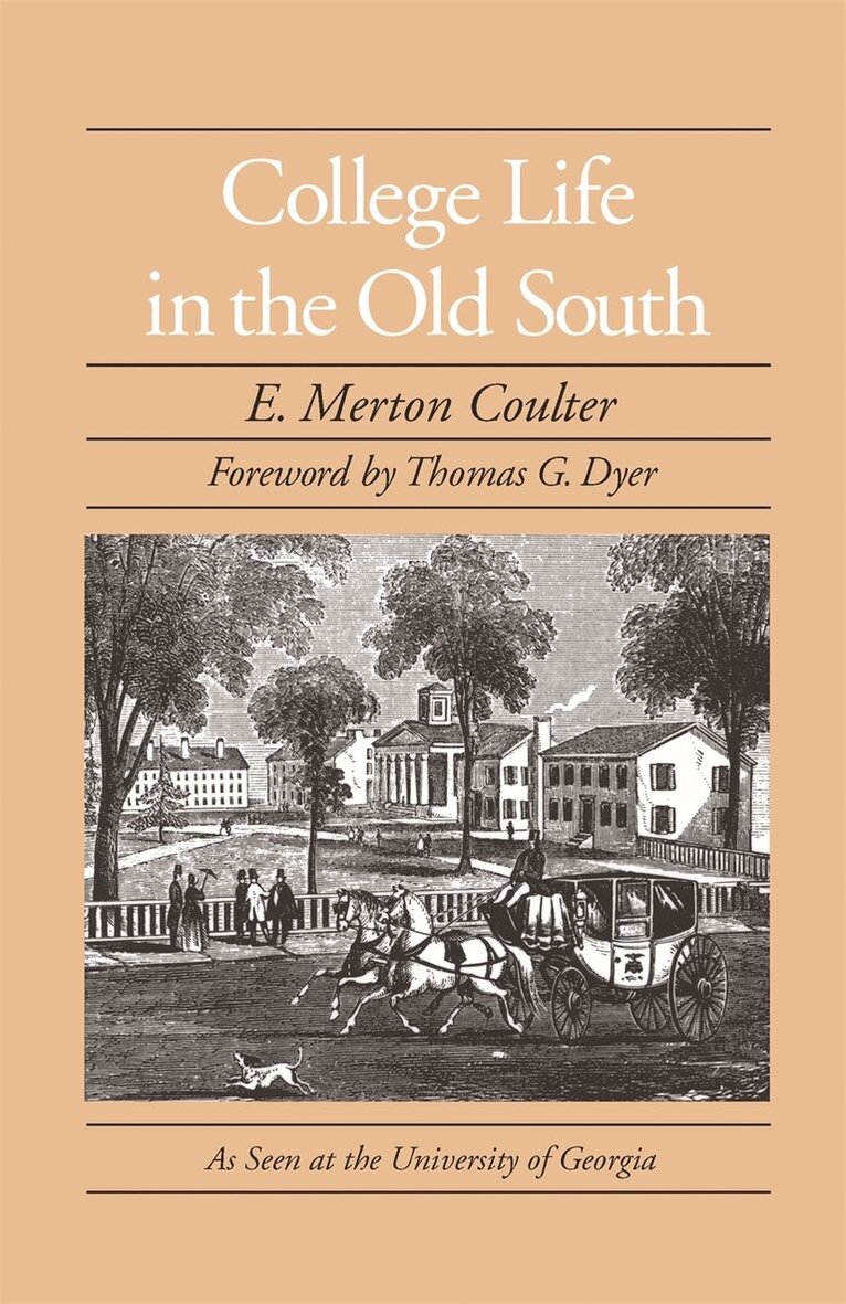 First published in 1928, College Life in the Old South relates the early history of the University of Georgia from its founding in 1785 through the Reconstruction era. Not a dry compilation of facts, E. Merton Coulter's classic study portrays the struggles and accomplishments of America's first chartered state university.Coulter recounts, among other things, how Athens was chosen as the university's location; how the state tried to close the university and refused to give it a fixed allowance until long after the Civil War; the early rules and how students invariably broke them; the days when the Phi Kappa and Demosthenian literary societies ruled the campus; and the vast commencement crowds that overwhelmed Athens to feast on oratory and watermelons. Coulter's account, interspersed with delightful anecdotes, not only depicts the early university but also shows its importance in the antebellum South.