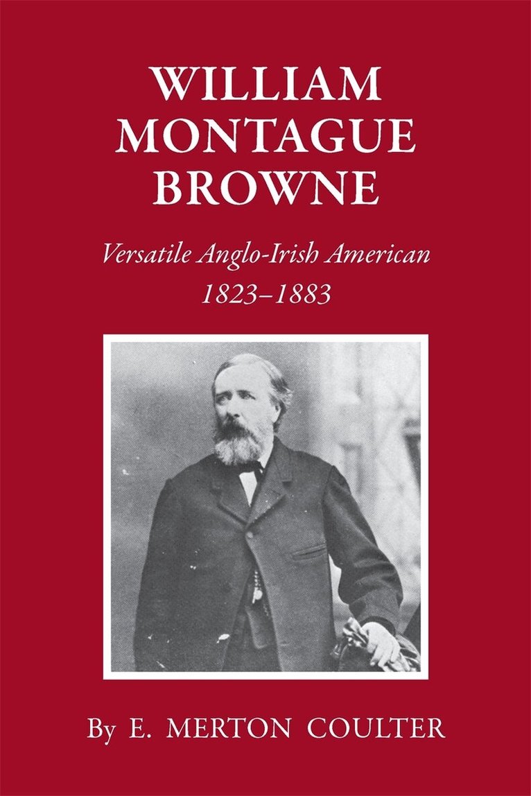 E. Merton Coulter’s biography of William Montague Browne portrays the life of an Irish journalist living in the north who moved south to adopt the Confederate cause. Born in County Mayo, Ireland, Browne moved to the U. S. in 1852 to be an editor at the New York Journal of Commerce. In 1859 he moved to Washington, D.C., where he edited and owned the Washington Constitution. As a journalist, Browne was an ardent champion of the southern cause and when Georgia seceded he moved south. During the Civil War he served as Director of Conscription in Georgia, aide-de-camp to President Davis, and brigadier general. Browne also took part in the defense of Savannah.After the war, Browne moved to Athens, Georgia, where he edited the Southern Banner, studied law, was admitted to the Georgia bar, and tried farming on a plantation in Oglethorpe County. Later he founded and edited the Southern Farm and Home and became secretary of the Carolina Life Insurance Co., of which Jefferson Davis was president. After the failure of this company, Browne returned to Athens and was elected the first Professor of History and Political Science at the University of Georgia.
