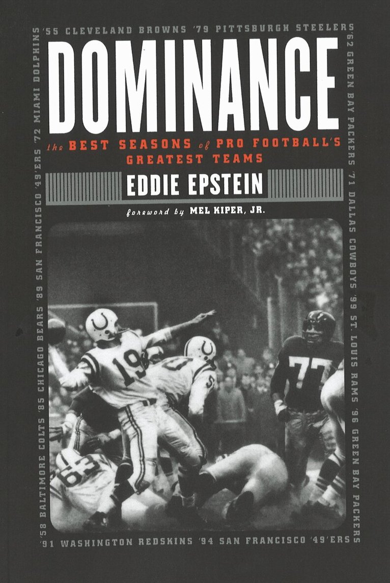 From the coauthor of the acclaimed Baseball Dynasties comes the first in-depth analysis of football’s greatest teams. Combining ground-breaking statistics with historical perspective, Dominance allows fans an original look at football greatness. Eddie Epstein assesses the twelve greatest teams in football history, with player and coach examinations and a complete season overview. Epstein also introduces the reader to teams that just missed greatness and offers his choice for the best football team of all time.