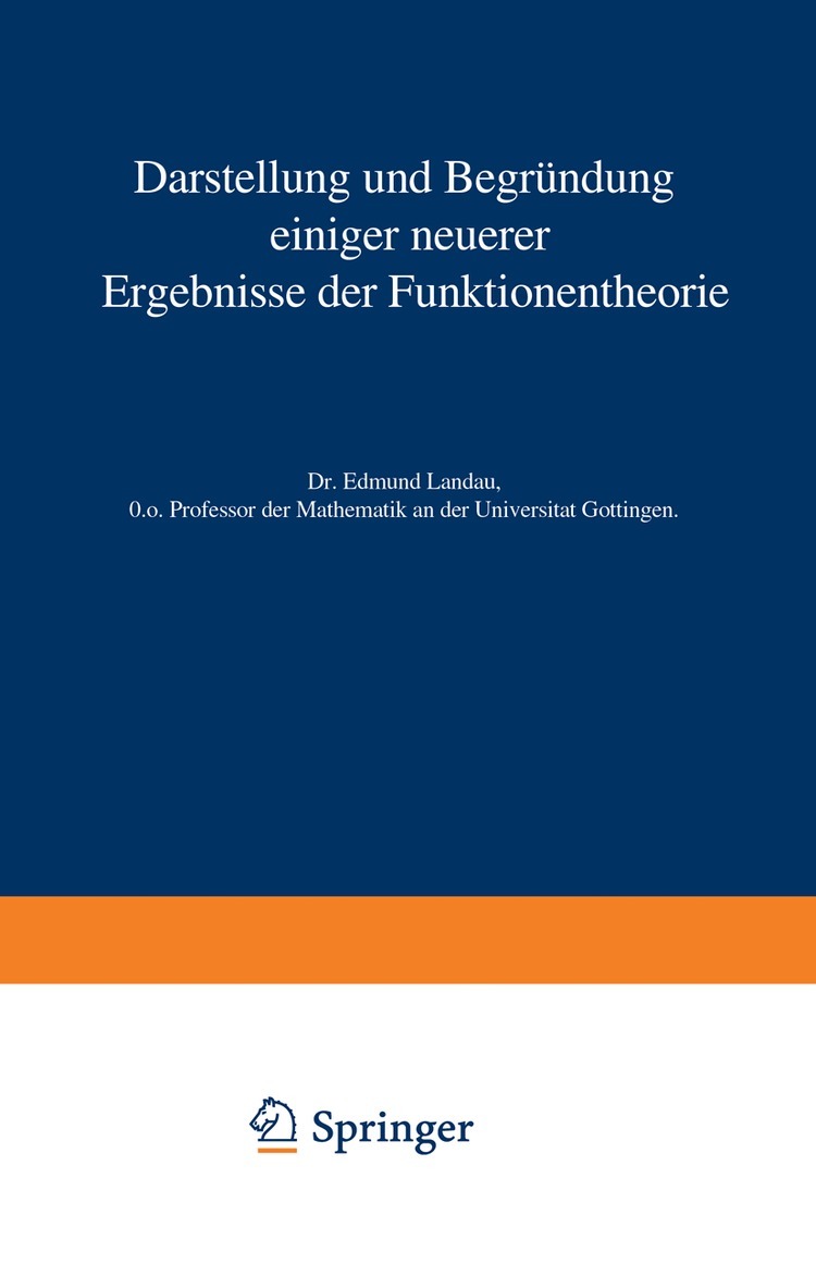 Darstellung und Begründung einiger neuerer Ergebnisse der Funktionentheorie von Edmund Landau