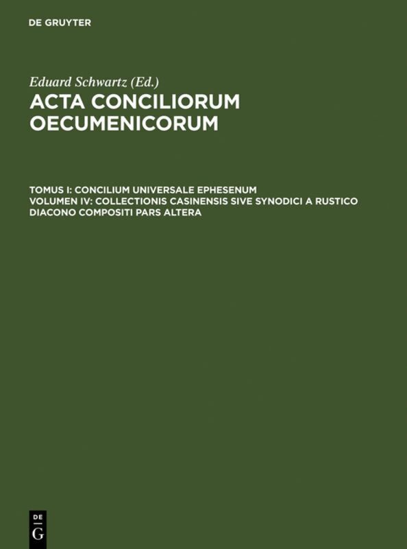 Pars 1. Collectio Palatina. Pars 2. Cyrilli Epistula Synodica. Collectio Sichardiana Ex Collectione Quesneliana. Collectio Winteriana