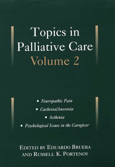 The rapidly evolving field of Palliative Care focuses on the management of phenomena that produce discomfort and that undermine the quality of life of patients with incurable medical disorders. The interdisciplinary clinical purview includes those factors - physical, psychological, social, and spiritual - that contribute to suffering, undermine quality of life, and prevent a death with comfort and dignity. Palliative Care is a fundamental part of clinical practice, the "parallel universe" to therapies directed at cure or prolongation of life. All clinicians who treat patients with chronic life-threatening diseases are ingaged in palliative care, continually attempting to manage complex symptomatology and functional disturbances.The scientific foundation of palliative care is advancing, and similarly, methods are needed to highlight, for practitioners at the bedside, the findings of empirical research. TOPICS IN PALLIATIVE CARE has been designed to meet the need for enhanced communication in this field.To highlight the diversity of concerns in palliative care, each volume of the TOPICS IN PALLIATIVE CARE Series is divided into sections that address a range of issues. Addressing aspects of symptom control, psychosocial functioning, spiritual or existential concerns, ethics, and other topics, the chapters in each section review the given area and focus on a small number of salient issues to analysis. The authors present and evaluate existing data, provide a context drawn from both the clinical and research settings, and intergrate knowledge in a manner that is both practical and readable. The specific topics covered in Volume 2 are Neuropathic Pain, Cachexia/Anorexia, Asthenia, and Psychological Issues in the Caregiver.