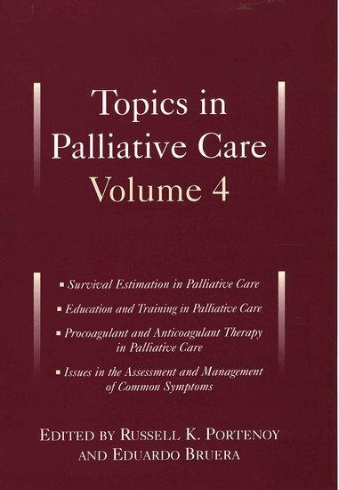 This is the fourth book in a series devoted to research and practice in palliative care. This rapidly evolving field focuses on the management of phenomena that produce discomfort and undermine the quality of life of patients with incurable medical disorders. To highlight the diversity in this field, each volume is divided into sections that address a range of issues. Various sections discuss aspects of symptom control, psychosocial functioning, spiritual orr existential concerns, ethics, and other topics. The four sections in this volume are; Survival Estimation in Palliative Care, Education and Training in Palliative Care, Procoagulant and Anticoagulant Therapy in Palliative Care, and Issues in the Assessment and Management of Common Symptoms. The authors present and evaluate existing data, provide a context drawn from both the clinic and research, and integrate knowledge in a manner that is both practical and readable.