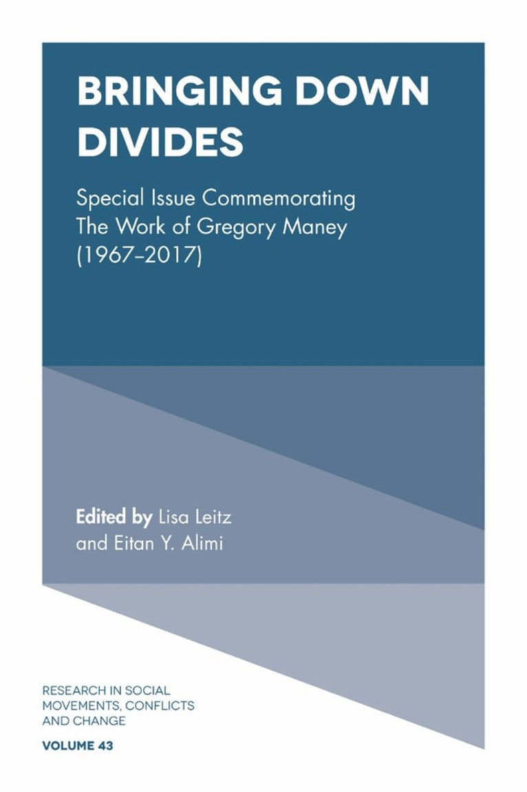 The 43rd Volume of Research in Social Movements, Conflicts and Change continues the series' tradition of publishing peer reviewed chapters, which advance our understanding of peace, political contention, and social change, by offering new ways to research and theorize attempts to challenge divides. Dedicated to the memory of Gregory M. Maney, Bringing Down Divides engages with and continues Maney's work on international conflicts, peace and justice movements, and community-based research. The volume is organized around three types of divides:Attributional divides, meaning the quality or feature of people around which resources, rights, and powers are distributed unequally, such as race, gender, and ethno-nationality. Ideological divides which encompass the systems of meaning, ideas, and beliefs that split and polarize people, such as conservative vs. progressive and antiwar vs. pro-war.Epistemological divides, namely the types, productions, and usages of knowledge over which conflicts occur, such as the academic-activist divide. The contributions to each of these sections focus on a variety of global issues, including the changing nature of political murals in Northern Ireland; armed actors' responses to civilian demands in Colombian peace territories; boundary-blurring in Turkey's leftwing-Islamist movement; and community-based action research. This makes Bringing Down Divides essential reading for those working and researching within the social movement field.