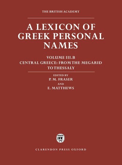 The Lexicon of Greek Personal Names, a major project of the British Academy, offers scholars a fully documented listing of all known personal names from the ancient Greek world. It draws on all the available evidence, primarily inscriptions but also literature, papyri, coins, vases and other artefacts; chronologically it ranges from the earliest times (though excluding Mycenean names) to about AD 600. It has benefited from the collaboration of scholars in many countries. It is intended to form the basis of a wide range of historical, philological, and literary research. The present volume, III.B, contains the onomastic material from Central Greece, comprising Phocis, Locris, Doris, Boeotia with Megara, and Thessaly. It continues the series begun with volume I, The Aegean Islands, Cyprus, and Cyrenaica, volume II, Attica, and volume III.A The Peloponnese, Western Greece, Magna Graecia, and Sicily.