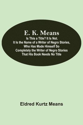 E. K. Means; Is This A Title? It Is Not. It Is The Name Of A Writer Of Negro Stories, Who Has Made Himself So Completely The Writer Of Negro Stories That His Book Needs No Title