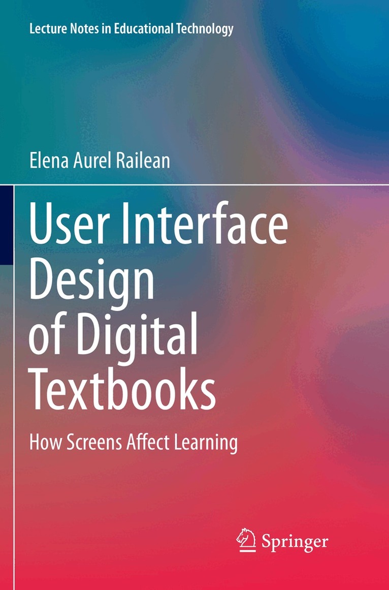 This book is a synthesis of the complex interdependencies between user interface design of digital screen and learning process. It is analyzed the impact of digital revolution on learning, phases of digital textbooks use and development; specific features of educational system & learning environment; psycho-pedagogical characteristics of XXI students; user interface design topology; user interface design features of digital textbooks in accordance with human thinking paradigms; critical thinking of user interfaces and content (linear, systems, global and metasystems design approach). One special chapter describes innovative organizational forms of learning with digital textbooks.Metasystems learning design of digital textbooks will be of particular interest to the readers because this is an innovative approach of learning design, which proved the experimental data of the instructional dynamic and flexible strategy. It proved the practical application of didactical model of digital textbooks for chemistry and mathematics. The main benefits for reader refers on understanding the applicability of metasystems learning design for digital textbook use and development, in particular for STEM education. It takes more than analysis to help readers overcome the impact of user interface design of digital textbook on learning outcomes.